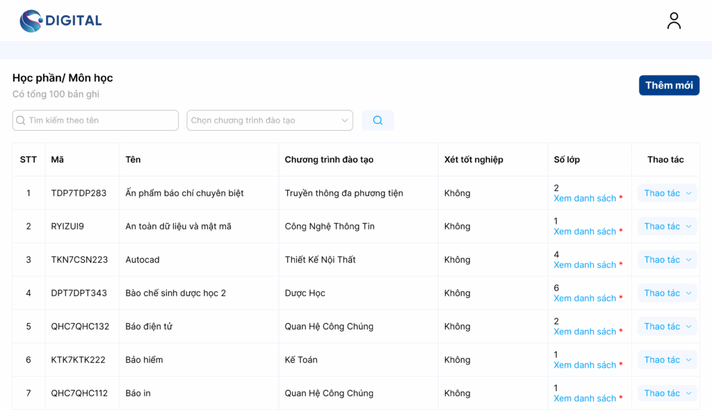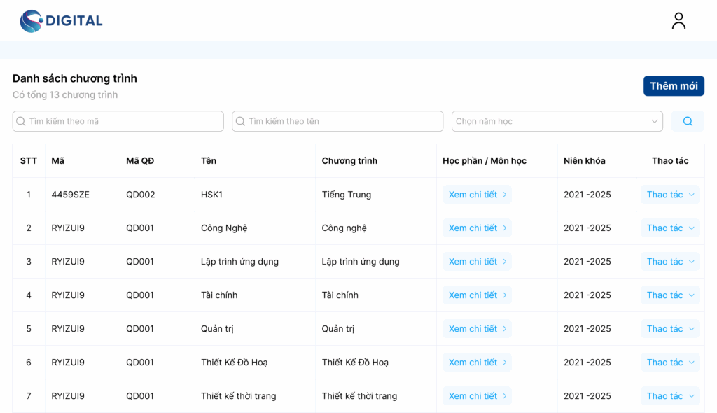 Tổ chức dữ liệu khoa học đầy đủ giúp việc quản lý các Chương trình Đào tạo từ tất cả các Khoa và Bộ môn toàn diện và dễ dàng