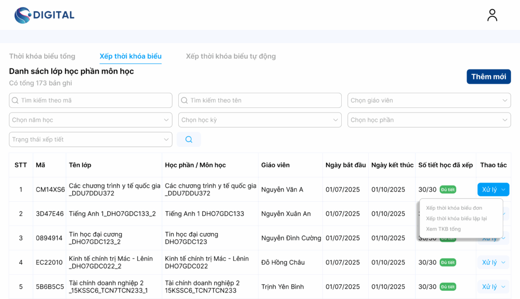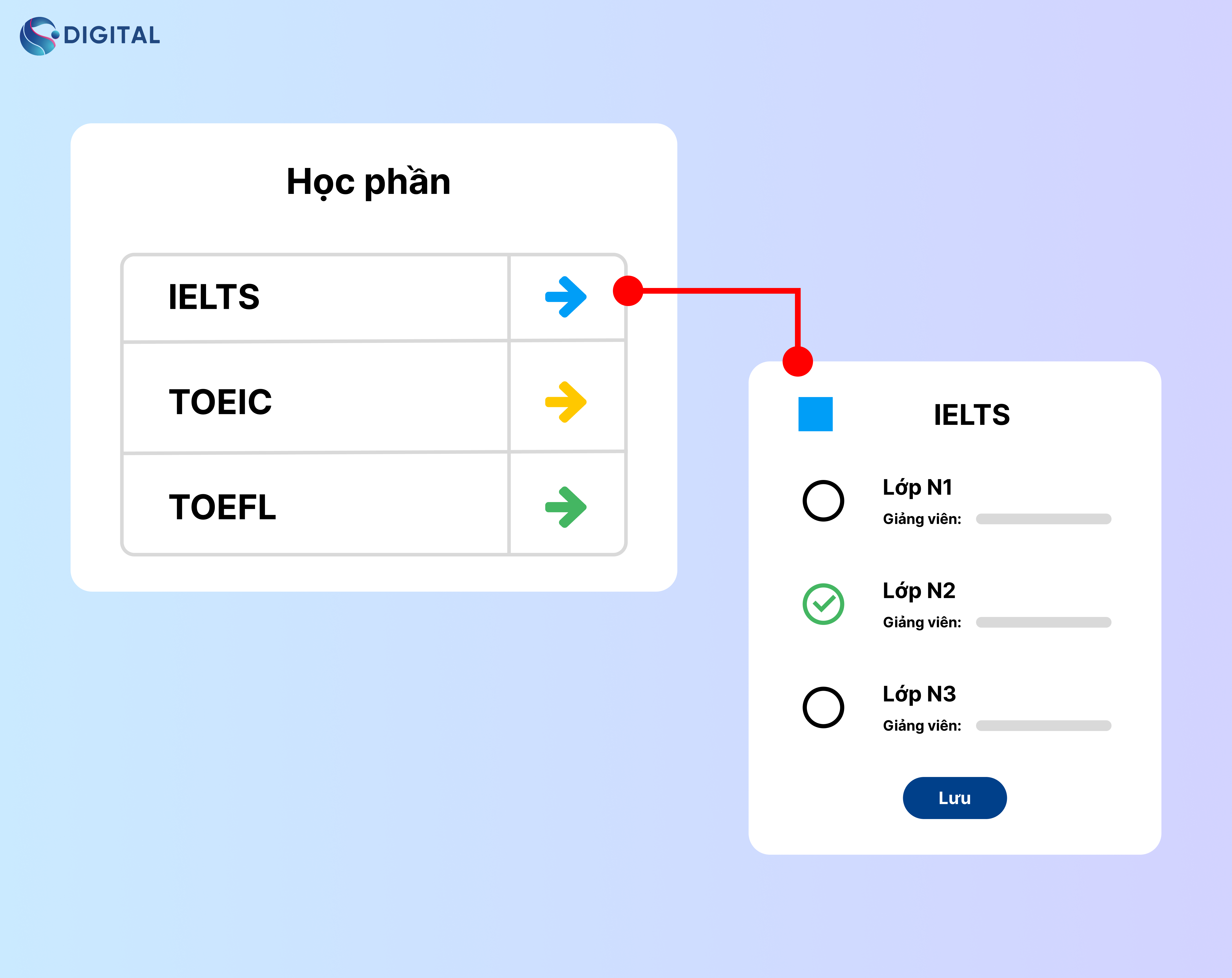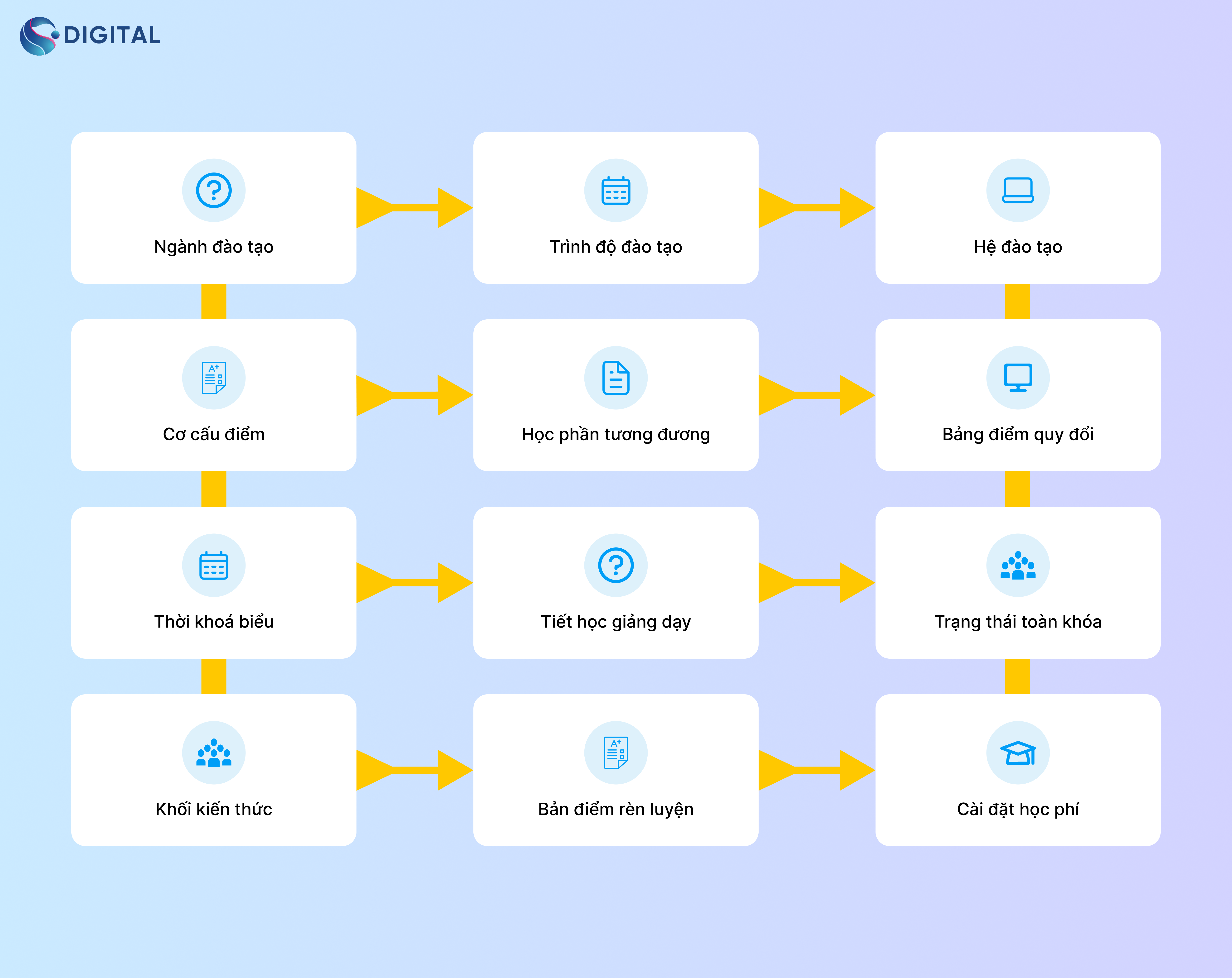 Các cấu phần được tùy chỉnh linh hoạt theo mô hình giảng dạy của đơn vị như theo hệ đào tạo và hình thức giảng dạy